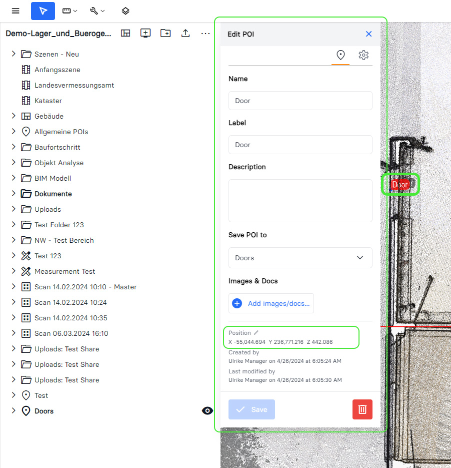 InUworld-Edit POI with XYZ position highlighted