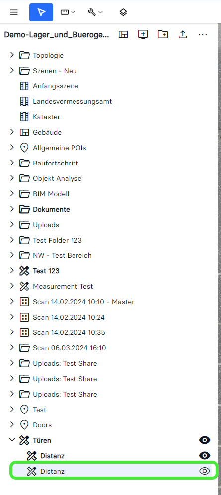 InUworld-Messungs-Ebene ein-oder ausblenden highlighted