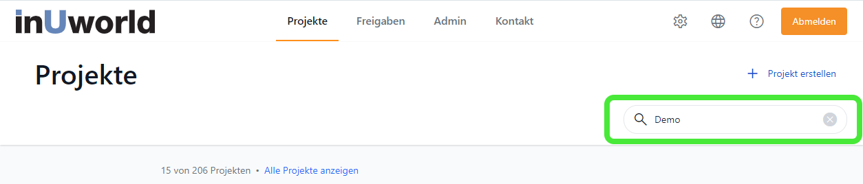 InUworld-Projekte suchen highlighted