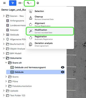 Der Platzierungsmodus dient dazu, die Punktwolken entweder auf der horizontalen Ebene oder auf der vertikalen Ebene auszurichten.