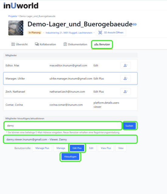 - Navigieren Sie zum Register "Benutzer" in der Projekt-Detailansicht